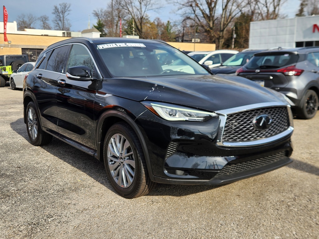 Leather Seats, Sunroof, Panoramic Roof, All Wheel Drive, Power Liftgate. INFINITI LUXE with Black Obsidian exterior and Graphite interior features a 4 Cylinder Engine with 268 HP at 5600 RPM*.